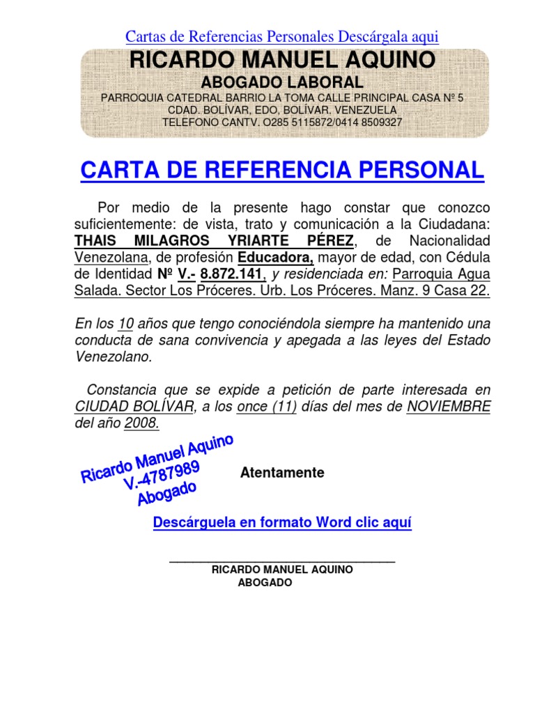 Formato Word Referencia Personal Venezuela 2020